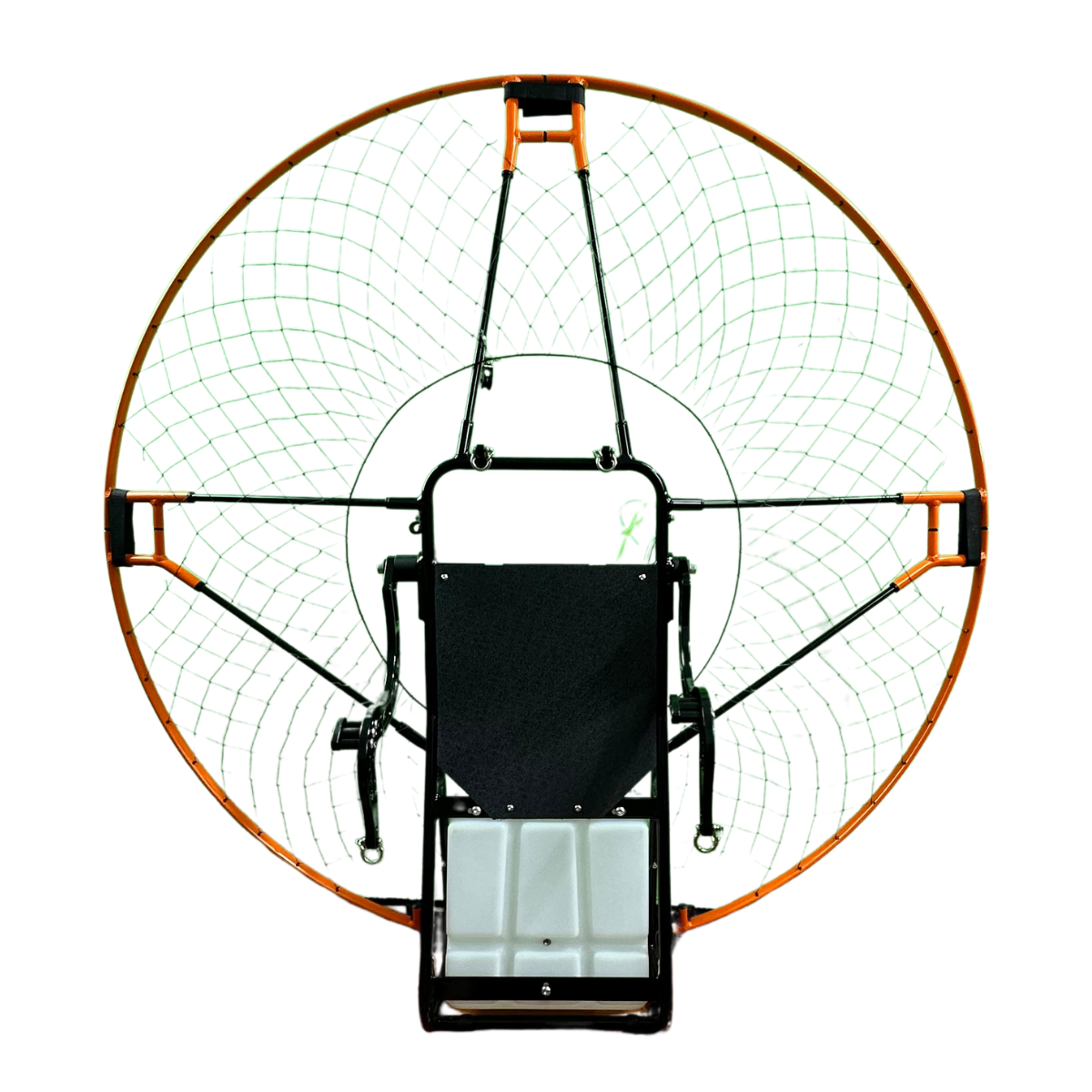 Estrutura com um design que facilita a mobilidade do paramotor, tornando o transporte e o armazenamento mais práticos. A estrutura também evita que o paramotor tombe, proporcionando uma proteção adicional durante os períodos de inatividade.